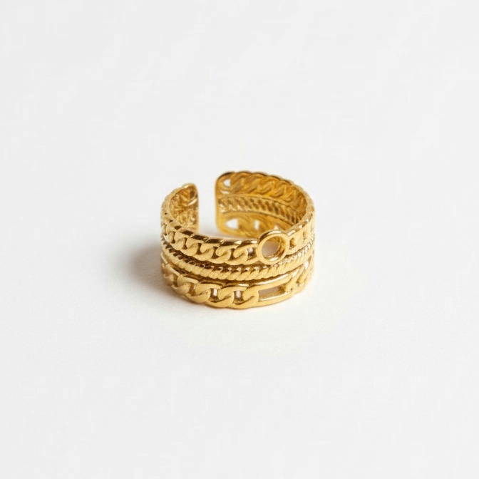 Sleek and durable, this adjustable layered stainless-steel ring is tarnish-free and perfect for everyday wear. Designed for a comfortable fit on any finger.