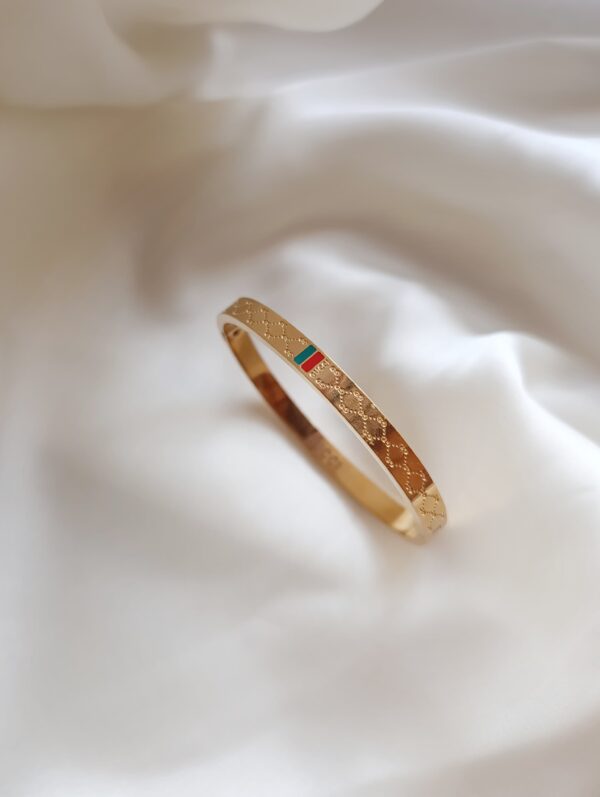A sleek, minimal bracelet crafted from stainless steel — waterproof, tarnish-free, and made to glow with every movement.